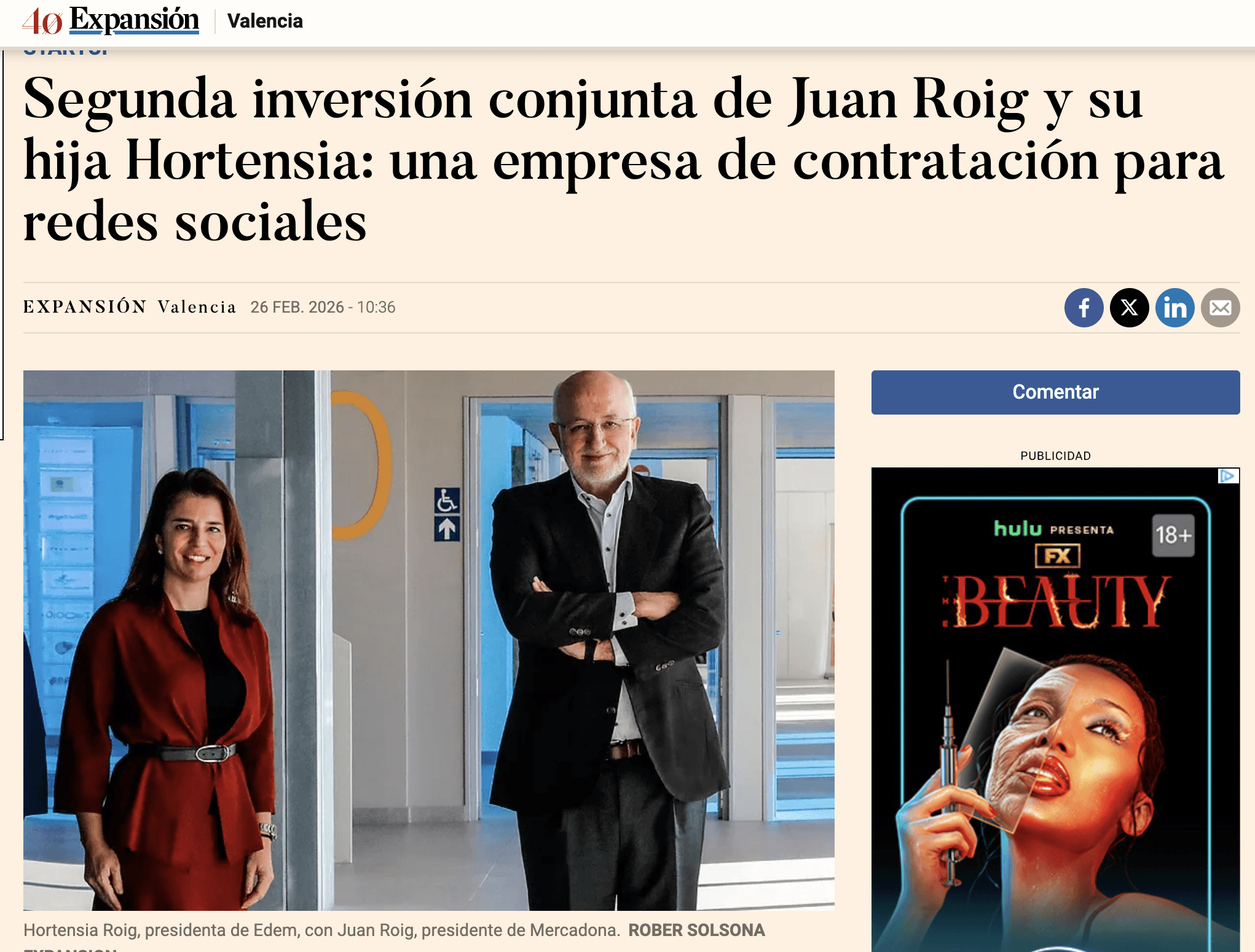 Segunda inversión conjunta de Juan Roig y su hija Hortensia: una empresa de contratación para redes sociales