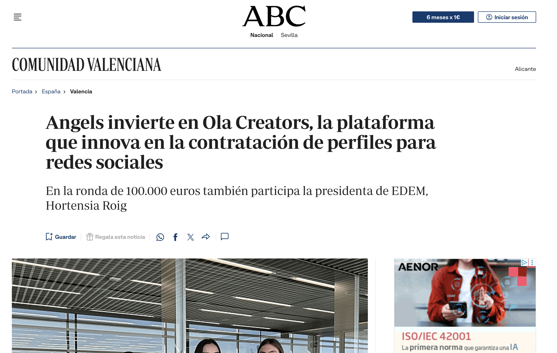 Angels invierte en Ola Creators, la plataforma que innova en la contratación de perfiles para redes sociales