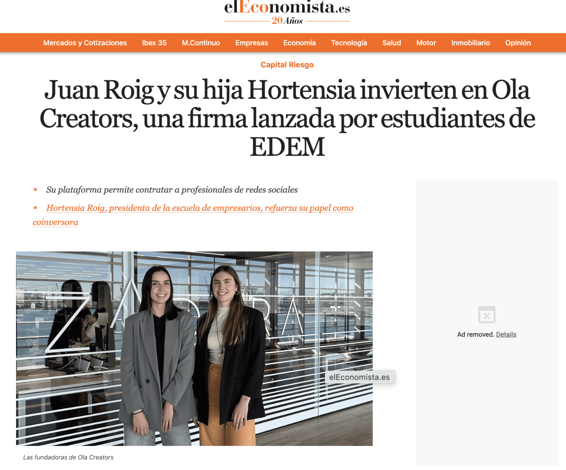 Juan Roig y su hija Hortensia invierten en Ola Creators,